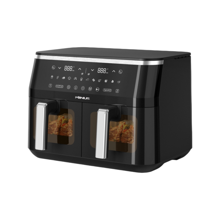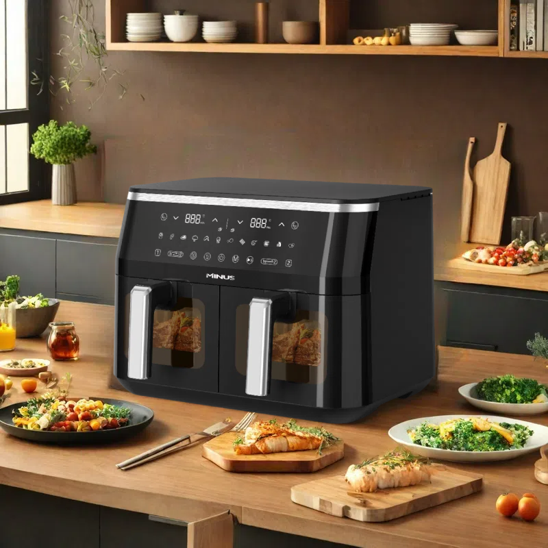 Minus Multi-functions Pizza 4.75QT*2 Air Fryer is more convenient for different cooking and owns multi-functions to use. Visualization to control and cooking.