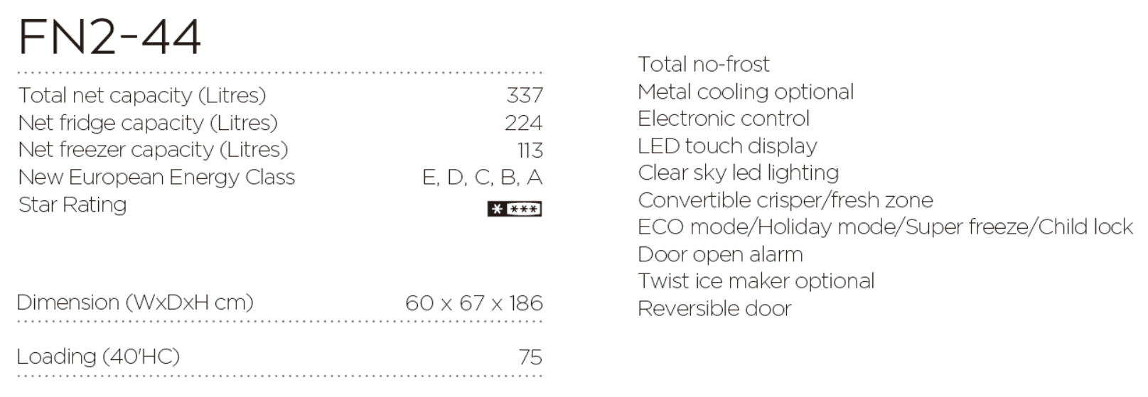 Minus Combi Refrigerator 337L with Total No Frost FN2-44