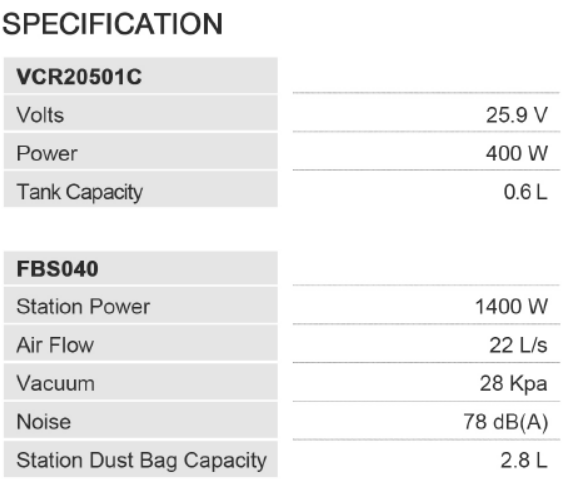- Dust cup capacity: 0.15L