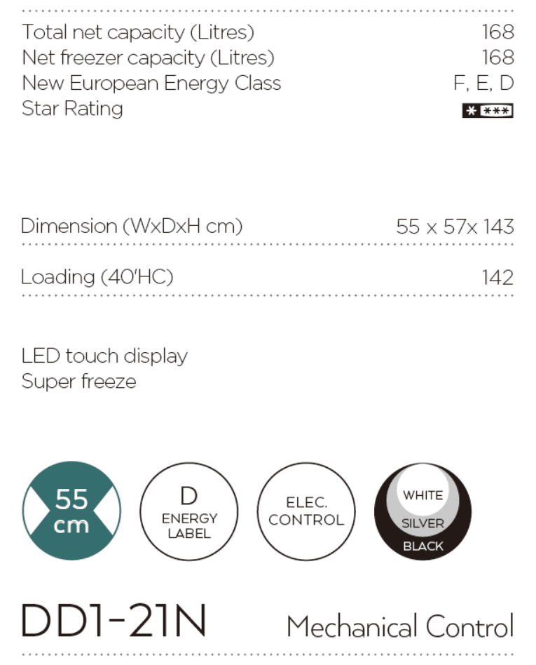 Minus Freezer defrost Upright Refrigerators 160L – DD1-21N