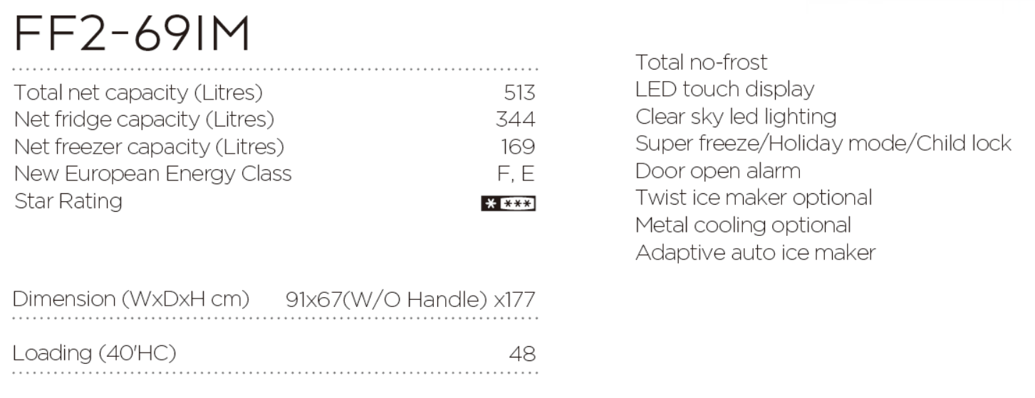 Minus Side-by-Side 513L Refrigerator with Total No Frost FF2-69IM