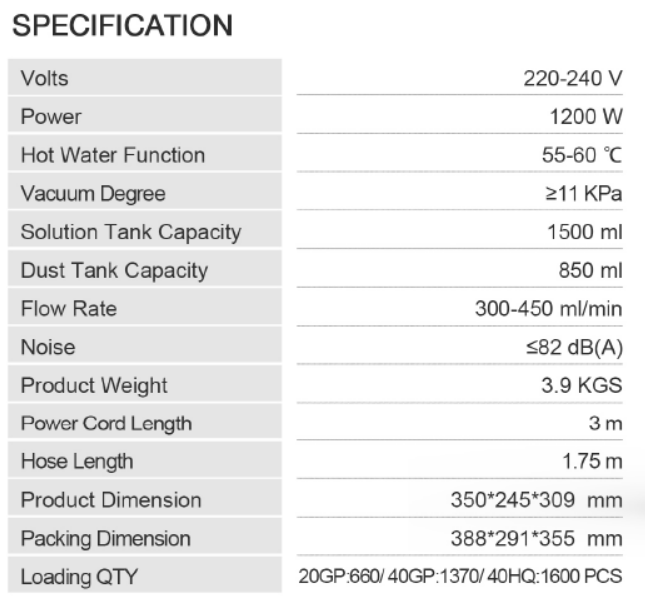 - Dust capacity: 0.2L