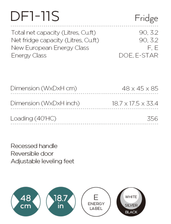 Minus Table Top & Mini Bar, Defrost Refrigerators 90L – DF1-11S